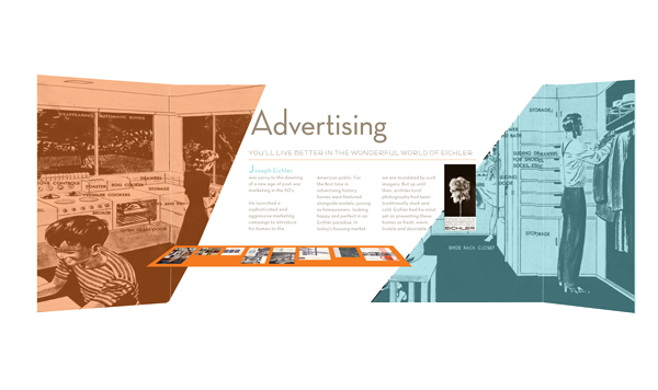 An exhibit design based on Joseph Eichler and his legacy. The design was to align to an existing space in the San Jose, Martin Luther King Jr. Library. Required to thoroughly plan the content and the visuals of the exhibit.